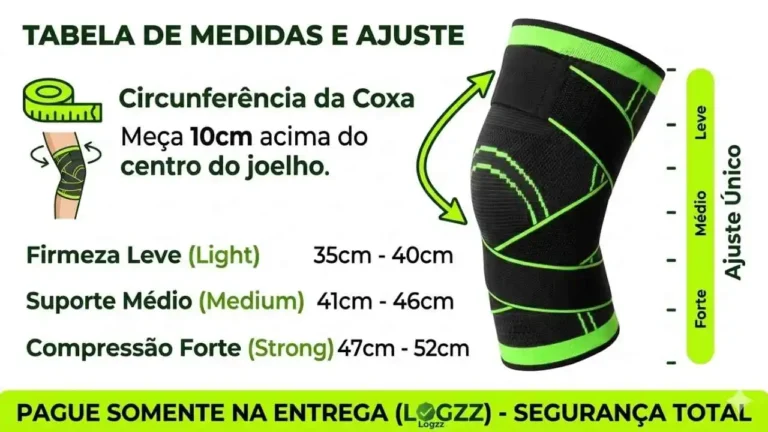 Joelheira ortopédica com compressão 360 graus. Perfeita para aliviar dor no joelho, artrite e desconforto. Use no dia a dia, em atividades físicas ou recuperação.